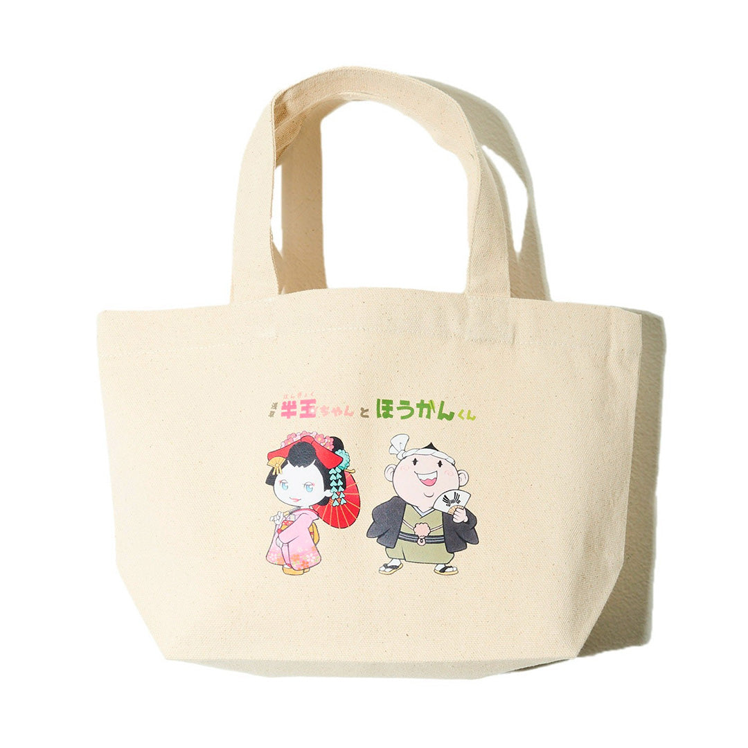 浅草花柳界の公式キャラクター「半玉ちゃんとほうかんくん」が仲良く並んだ、かわいらしいミニトートバッグです。